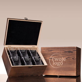 Zestaw do whisky KARAFKA I 4 SZKLANKI dla pary w drewnianej skrzynce