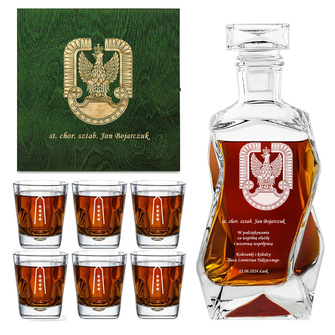 PREZENT DLA LOTNIKA – Grawerowana karafka i szklanki w drewnianej skrzynce