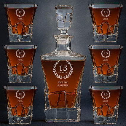 Grawerowany Zestaw do whisky na 15. ROCZNICĘ ŚLUBU – dla pary