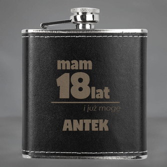 Piersiówka w skórze z grawerem z okazji 18 URODZIN