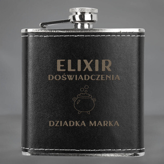 Piersiówka w skórze z grawerem ELIXIR DOŚWIADCZENIA DZIADKA + IMIĘ