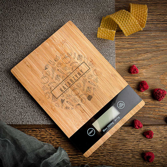 Bambusowa waga kuchenna z grawerem DLA AMATORA ZDROWEJ KUCHNI