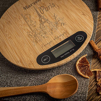 Waga kuchenna prostokątna z grawerem PARIS ELEGANCJA FRANCJA prezent DLA NIEJ