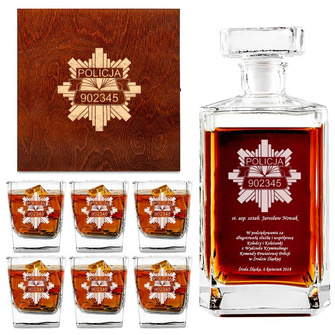 ZESTAW Z GRAWEREM karafka i 6 szklanek NA PREZENT DLA POLICJANTA emerytura awans