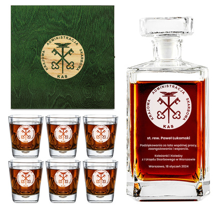 Grawerowana karafka i szklanki z logotypem KAS – elegancki prezent