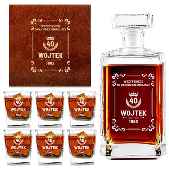 Zestaw karafka i 6 szklanek na prezent Z OKAZJI 40 URODZIN drewniane etui