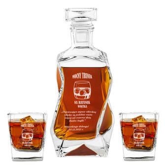 GRAWEROWANA Karafka i 2 szklanki do whisky NA RATUNEK na prezent DLA NIEGO