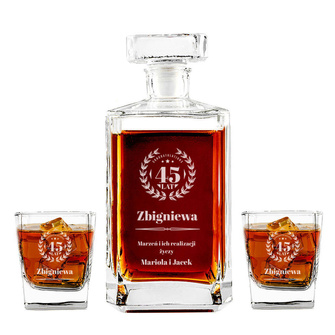 Zestaw do whisky z KARAFKĄ i 6 szklankami na 45 URODZINY