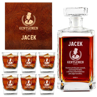 Zestaw z karafką i 6 szklankami w drewnianym etui DLA GENTLEMANA