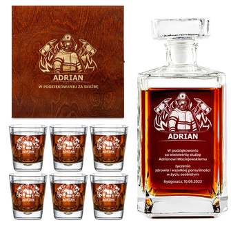 Karafka i 6 szklanek z grawerem PODZIĘKOWANIA STRAŻAKOWI ZA SŁUŻBĘ
