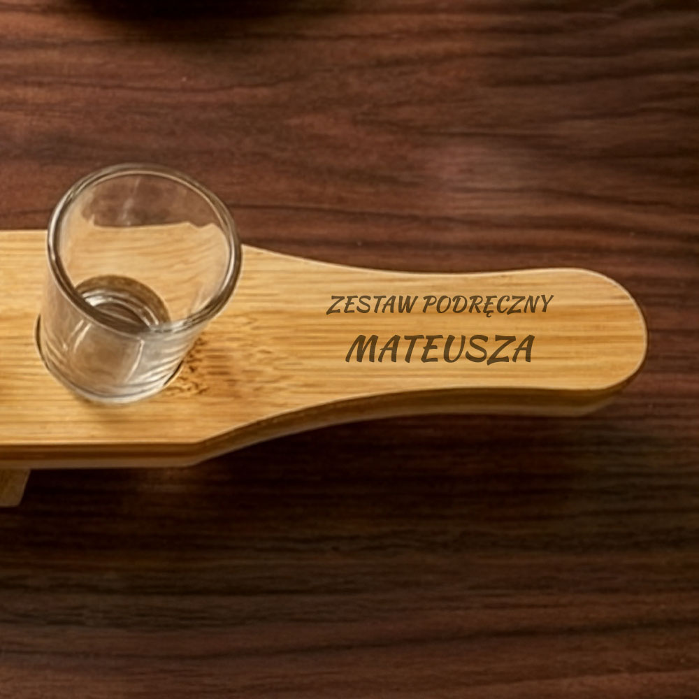 Deska z kieliszkami do shotów z grawerem ZESTAW PODRĘCZNY + IMIĘ