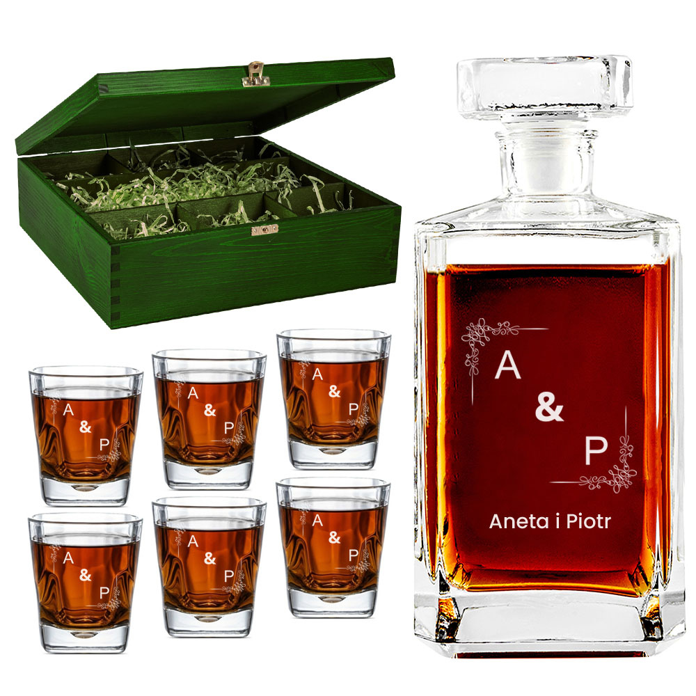 Grawerowana karafka + 6 szklanek w zielonej skrzynce – PREZENT POD CHOINKĘ