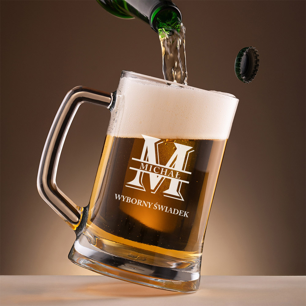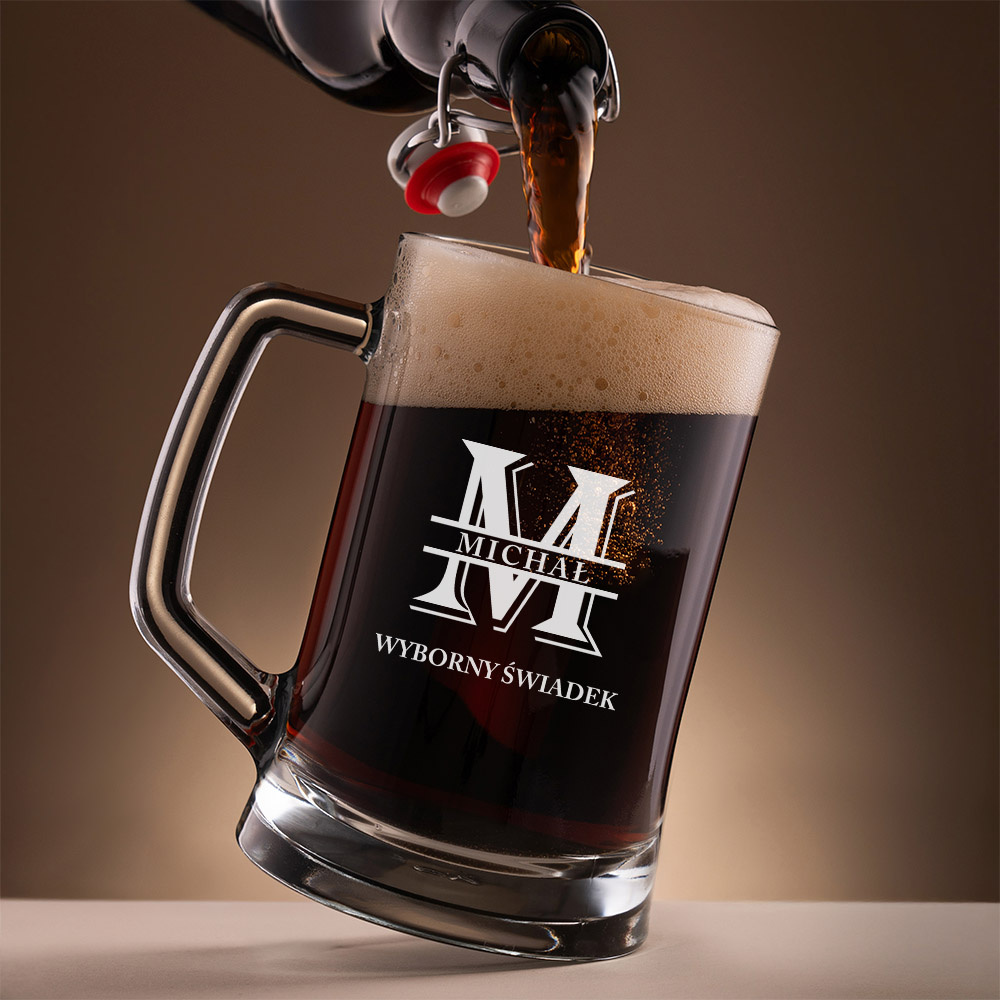 Kufel do piwa z grawerem DLA ŚWIADKA – imię i „Wyborny Świadek”