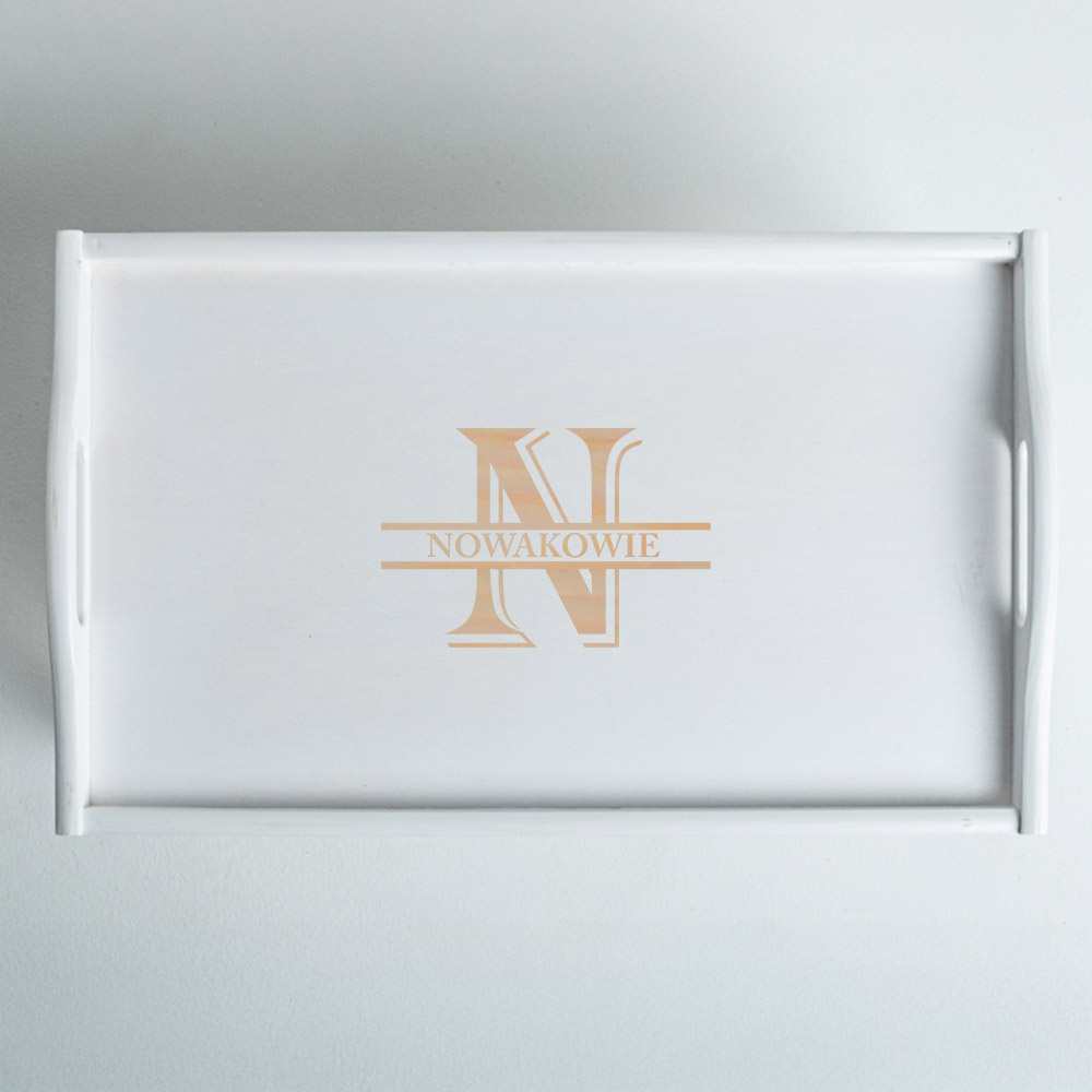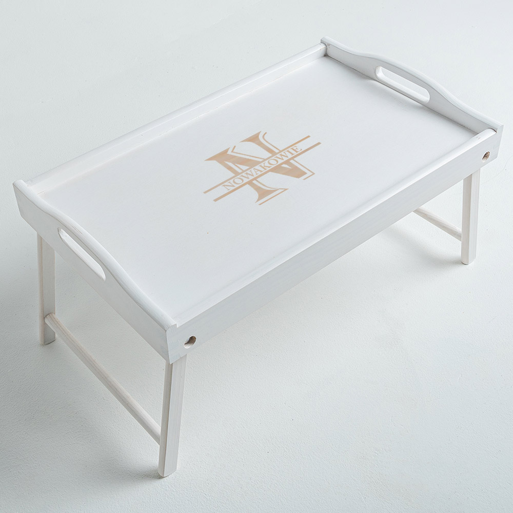 - Biały stolik śniadaniowy z grawerem monogramu i nazwiska to stylowy i praktyczny prezent dla pary – rodziców, teściów, dziadków lub bliskich przyjaciół.