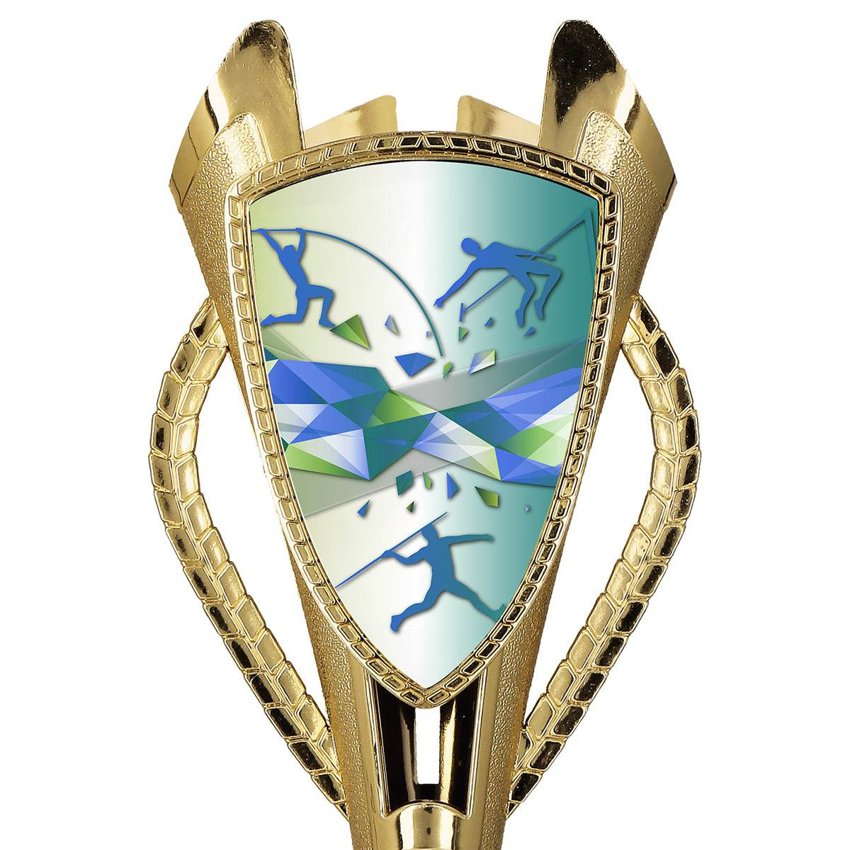 - Duży i elegancki puchar dedykowany zadowodom lekkoatletycznym. Kolorowa grafika dotyczący lekkoatletom. Puchar w kolorze złotym o wysokości 44 cm.