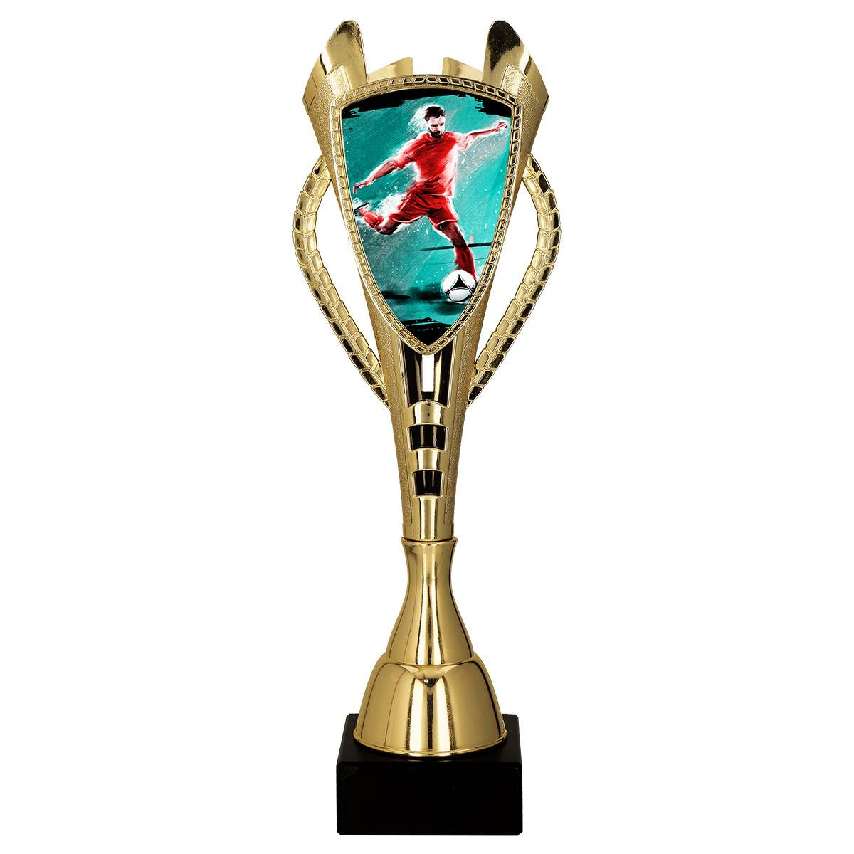 - Duży nowoczesny puchar dla najlepszego strzelca w turnieju piłkarskim. Wysokość 44 cm. Możliwość personalizacji tabliczką.
