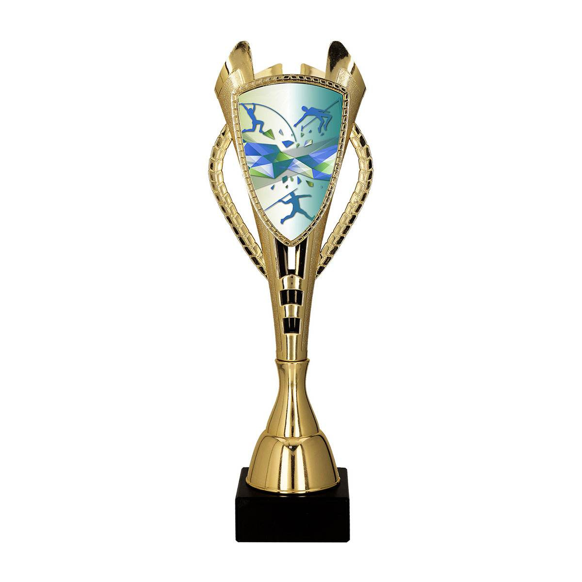 • Nowoczesny puchar z kolorową grafiką dedykowana zawodom lekkoatletycznym. Dostępne 3 rozmiary pucharu.