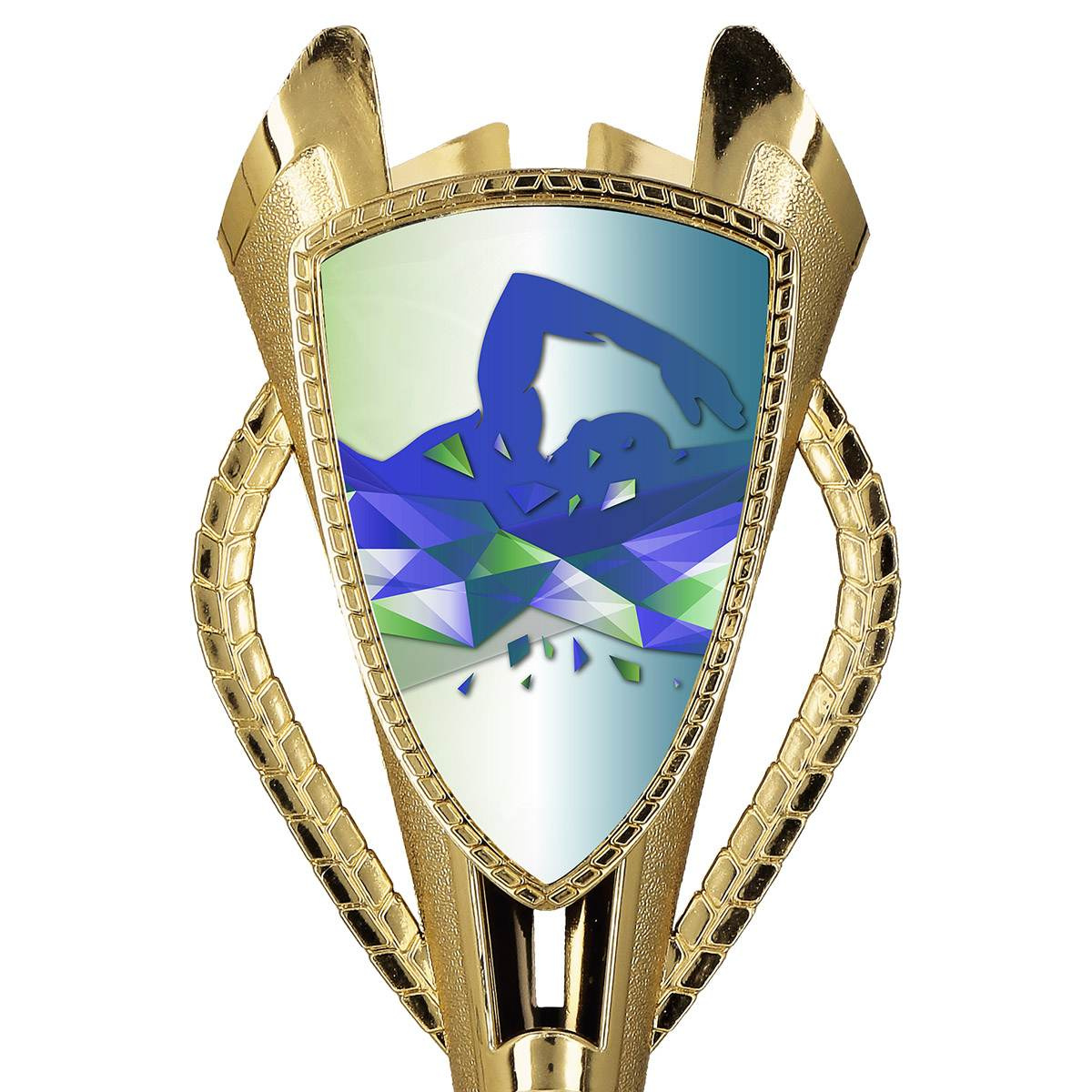- Personalizowany puchar dedykowany zawodom pływackim. Grafika dotycząca pływania umieszczona w górnej cześci pucharu.