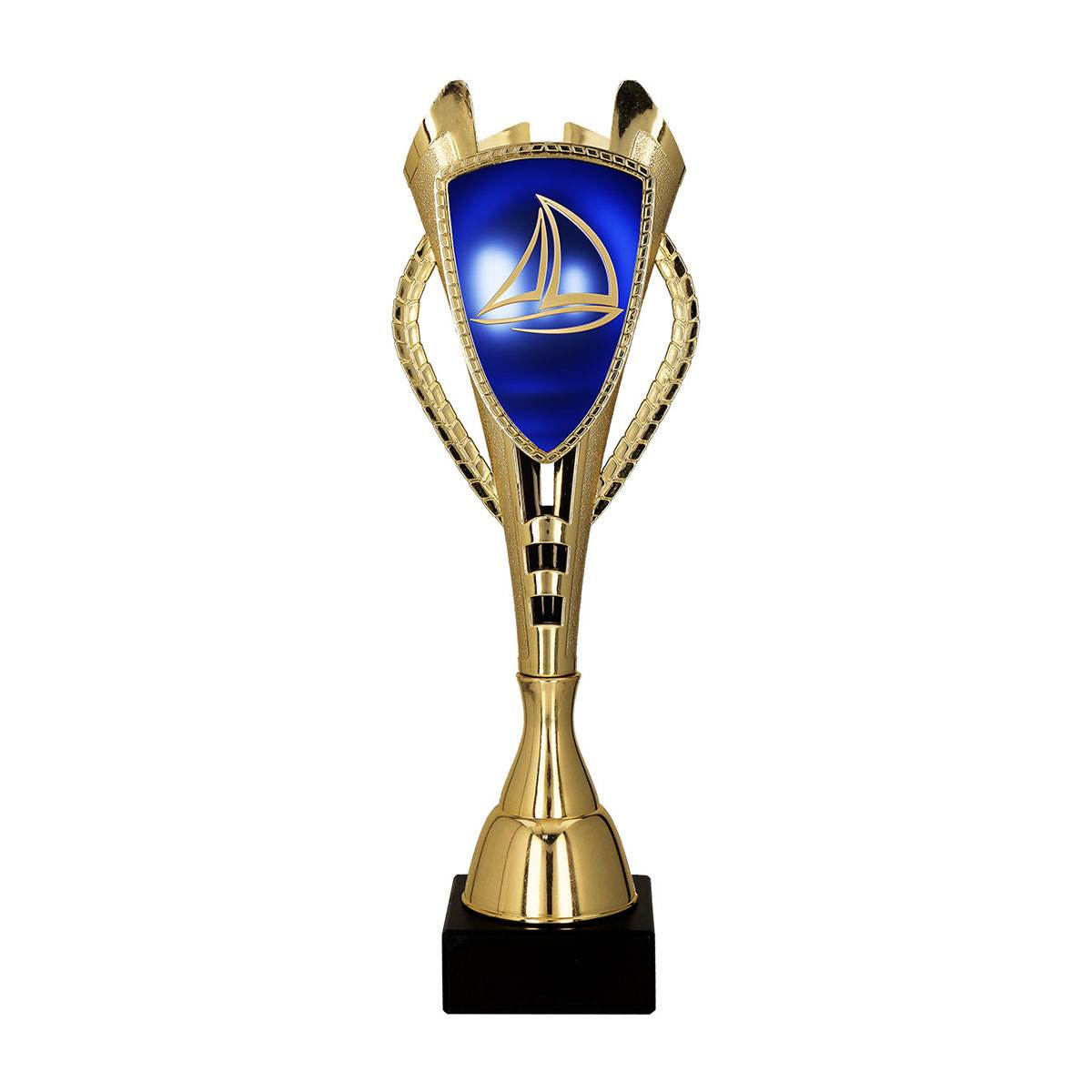 - Nowoczesny puchar z kolorową grafiką żaglówki w górnej cześci pucharu. Nagroda dla żeglarza. Wysokość 40.5 cm.