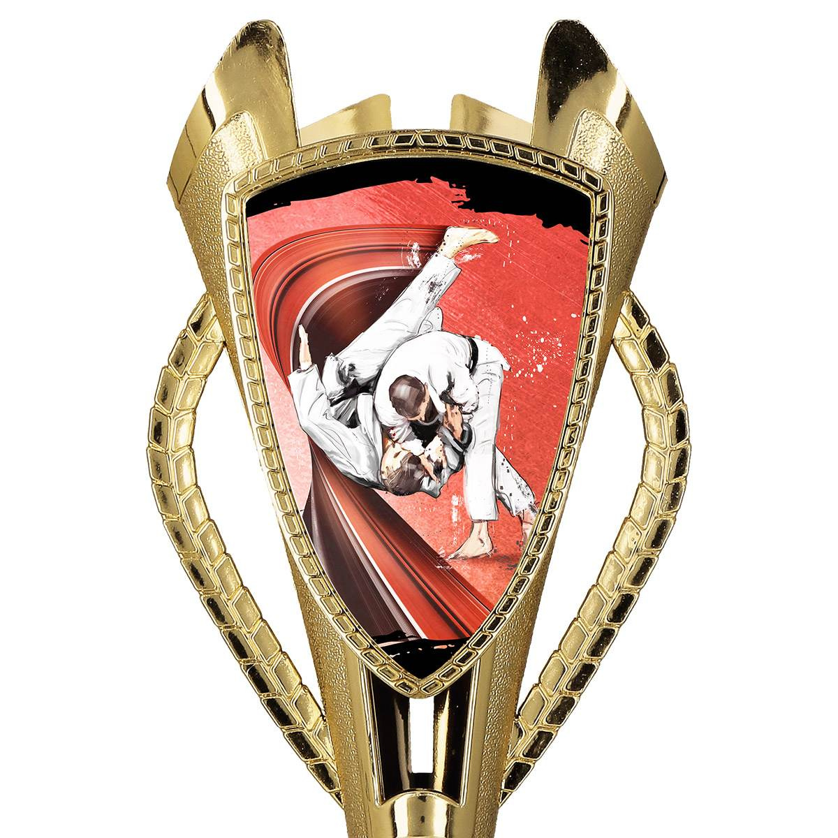 • Personalizowany plastikowy puchar w kolorze złotym. Puchar posiada tarcze z grafiką dedykowaną zawodom judo.