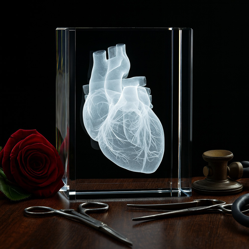 Wyjątkowa statuetka, o wymiarach 150x200x100 mm, wykonana jest z e szkła kryształowego, w której znajduje się precyzyjnie wygrawerowane trójwymiarowe ludzkie serce. Idealna jako prezent dla lekarzy, pielęgniarek, studentów medycyny, czy jako wyraz podziękowania za profesjonalną opiekę medyczną. Statuetka może także stanowić elegancki element dekoracyjny w przychodniach, szpitalach lub jako gratulacja po obronie pracy doktorskiej czy habilitacyjnej z zakresu kardiologii.