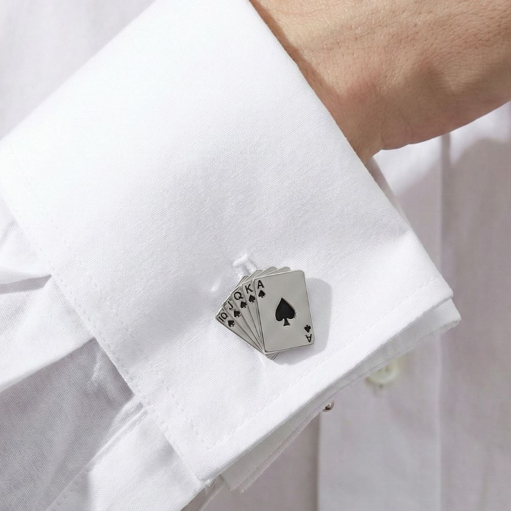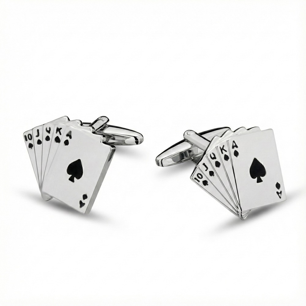 Te wyjątkowe spinki do mankietów w kształcie kart do gry to propozycja dla mężczyzn, którzy lubią wyróżniać się stylowym detalem z nutą charakteru. Doskonale oddają klimat kasyna, strategicznej rozgrywki i emocji, które towarzyszą każdemu pasjonatowi gier karcianych. Wykonane z wysokiej jakości stali szlachetnej, są trwałe, eleganckie i odporne na zarysowania. Motyw kart – najczęściej symbolizujący szczęście, ryzyko i pewność siebie – świetnie podkreśla indywidualny styl osoby, która je nosi.