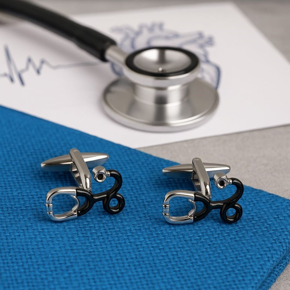 - Symboliczne spinki do mankietów w kształcie stetoskopu to elegancki prezent dla lekarza, ratownika, pielęgniarki lub absolwenta medycyny. W komplecie estetyczne etui prezentowe.