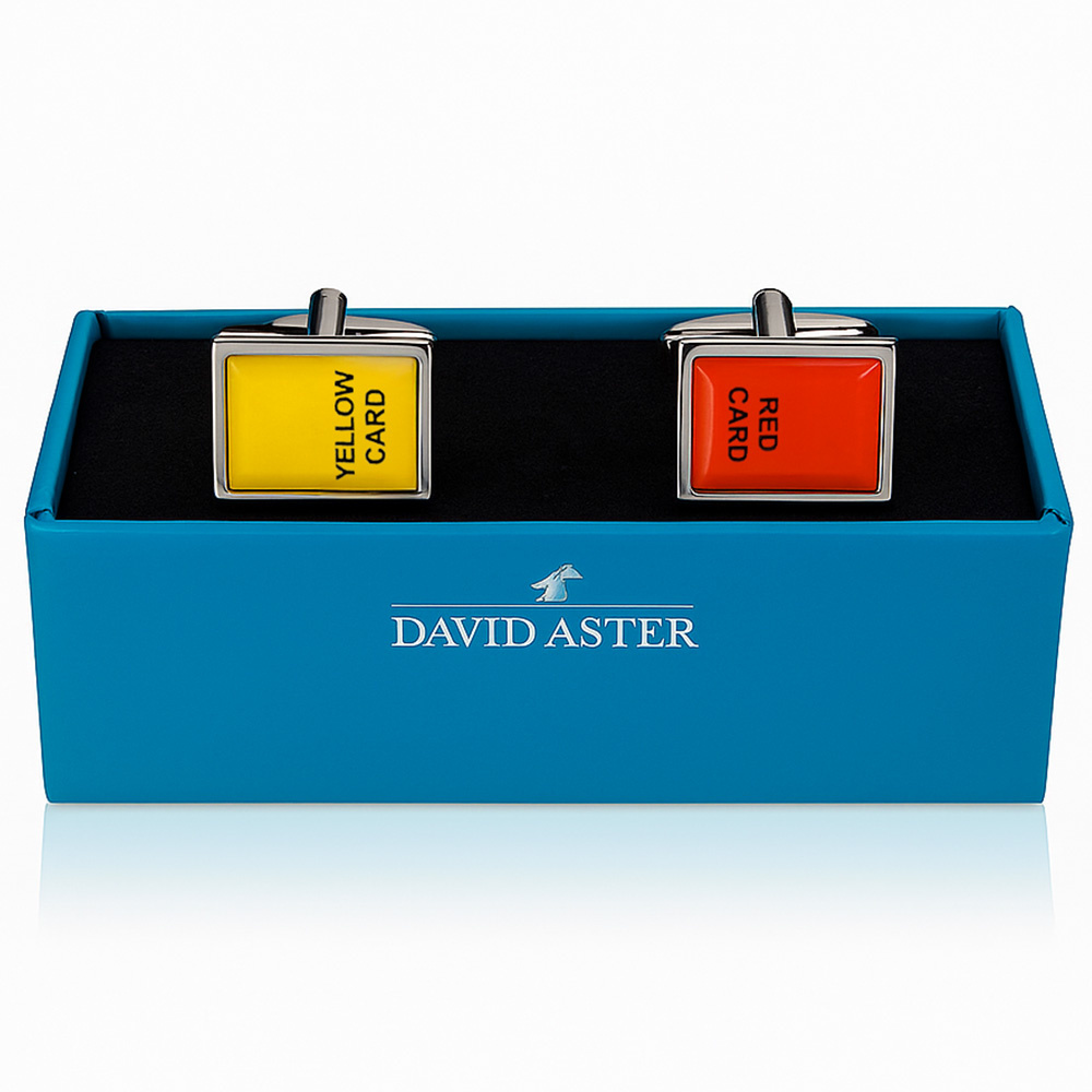 - Zestaw spinek do mankietów w kształcie żółtej i czerwonej kartki to humorystyczny, a zarazem elegancki prezent dla sędziego, trenera piłkarskiego, zawodnika lub fana futbolu. W zestawie etui prezentowe.