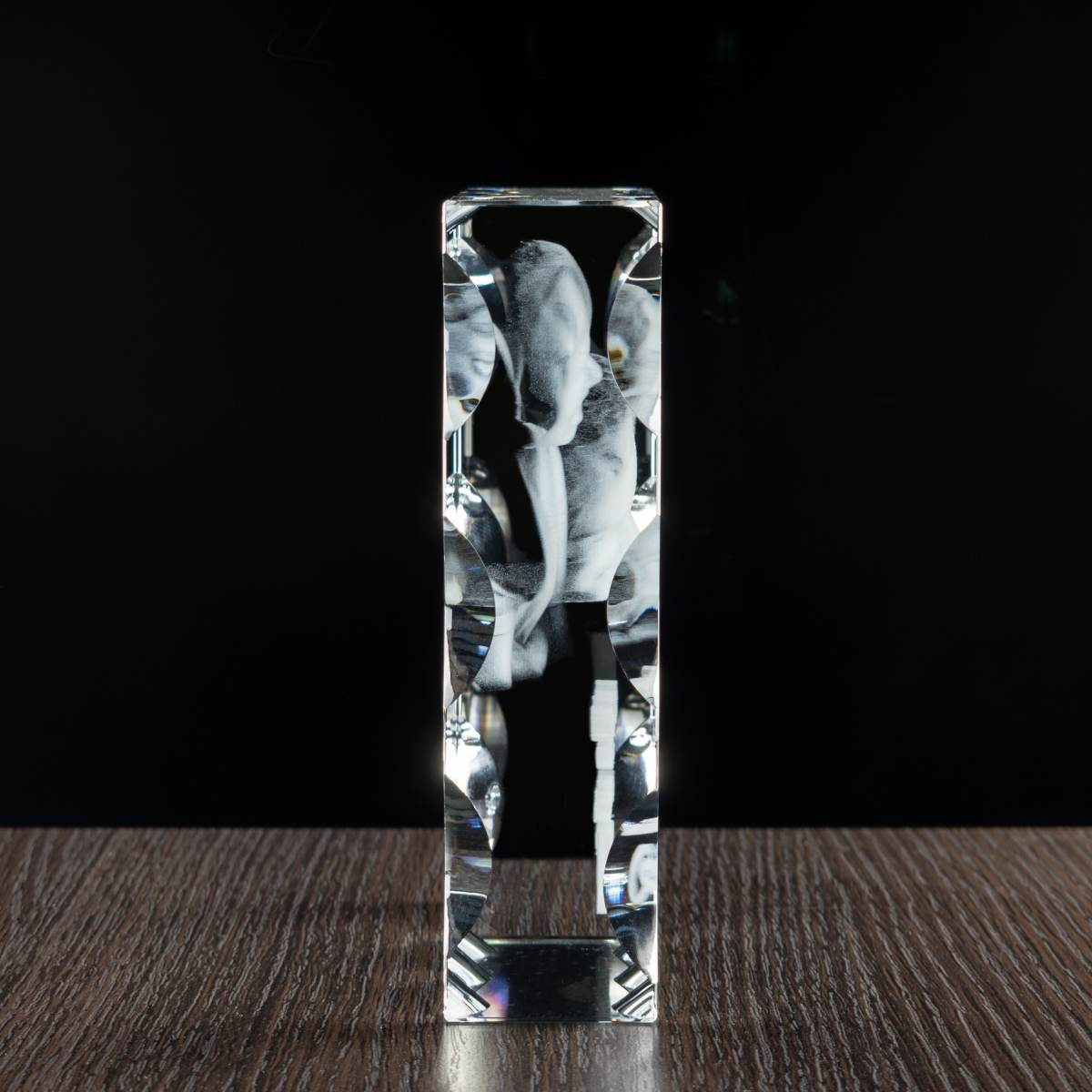 Wewnątrz przezroczystego kryształu (150 × 120 × 40 mm) powstaje trójwymiarowy grawerunek wykonany na podstawie przesłanego zdjęcia. Efekt przestrzenności sprawia, że obraz wygląda jak żywy, a każdy szczegół pozostaje doskonale widoczny.