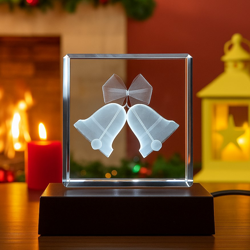 Wprowadź świąteczny nastrój do swojego domu z naszą szklaną statuetką 3D z grawerem świątecznych dzwonków!