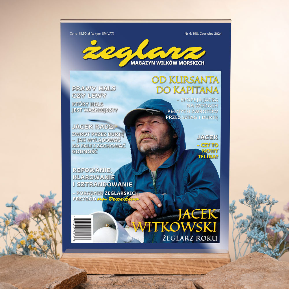 Jeśli obdarowana osoba kocha wiatr w żaglach, morskie opowieści i dobry dowcip, ta statuetka będzie strzałem w dziesiątkę! Statuetka ze szkła akrylowego z drewnianą podstawką, stylizowana na okładkę magazynu „Żeglarz”, to wyjątkowy i humorystyczny prezent z okazji imienin lub urodzin (40., 50., 60., 70.). Możesz dodać zdjęcie solenizanta, jego imię oraz zabawne tytuły artykułów inspirowane żeglarskim światem. Przykłady: