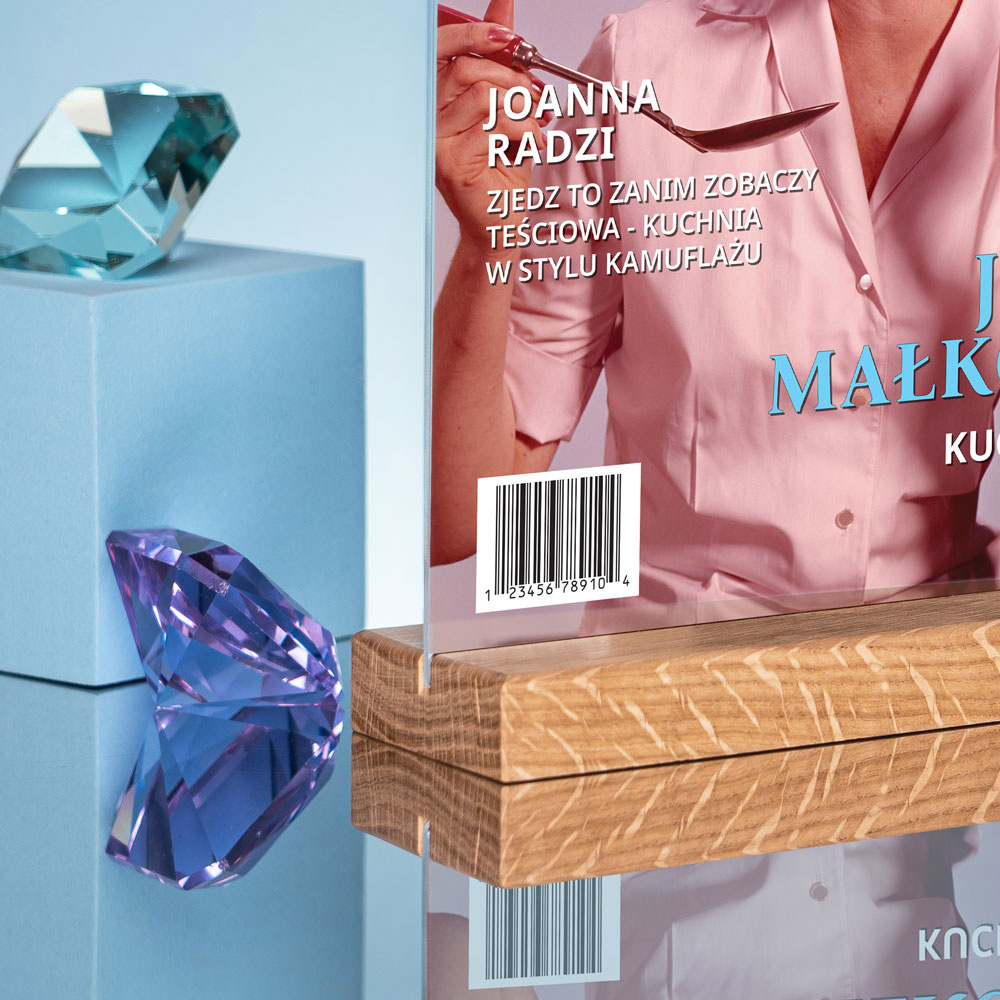 Statuetka ze szkła akrylowego – Okładka „Kuchenne Rewelacje” z humorem