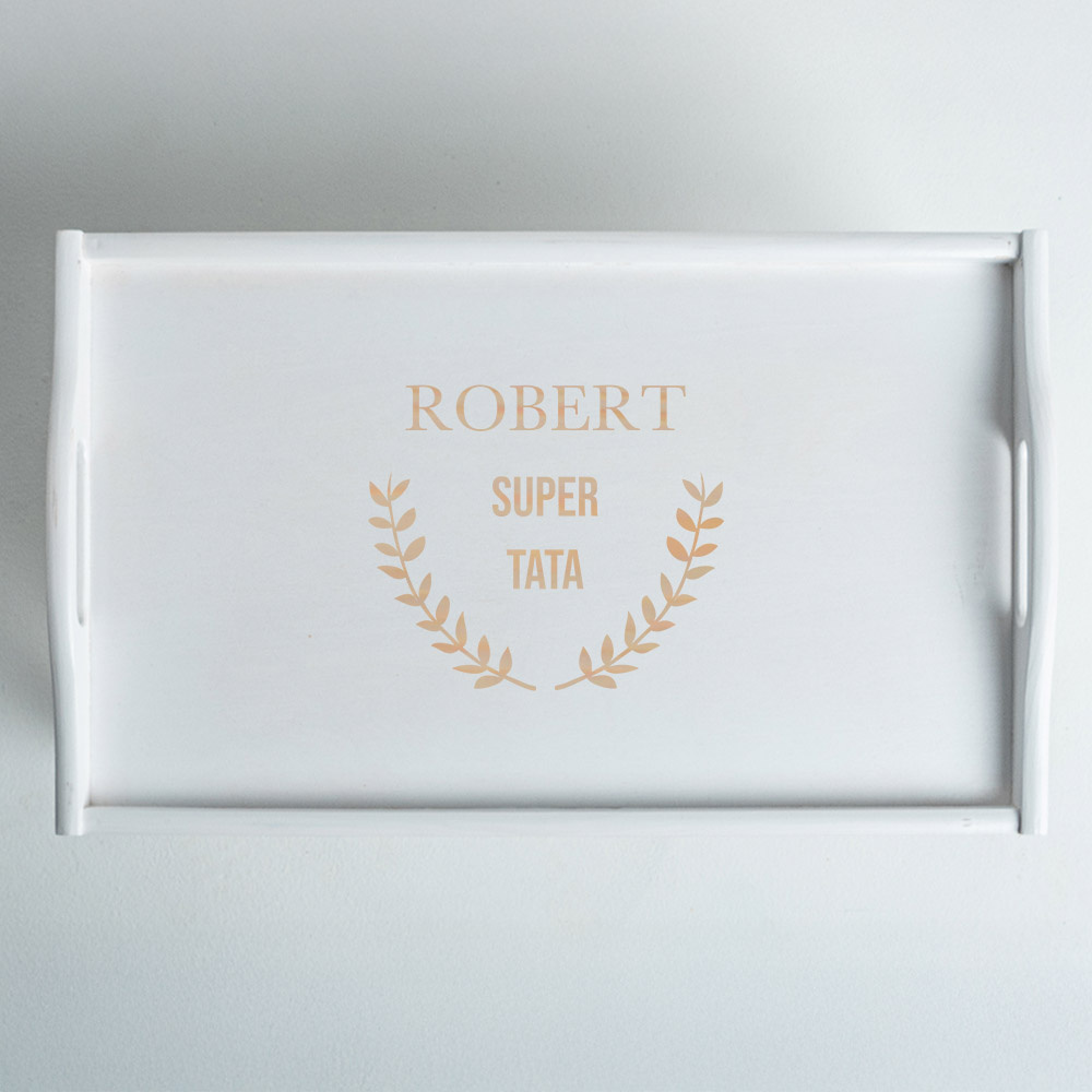 - Stolik śniadaniowy z napisem SUPER TATA i imieniem to praktyczny i pełen emocji prezent, który wywoła uśmiech u każdego taty – na Dzień Ojca, urodziny czy święta.