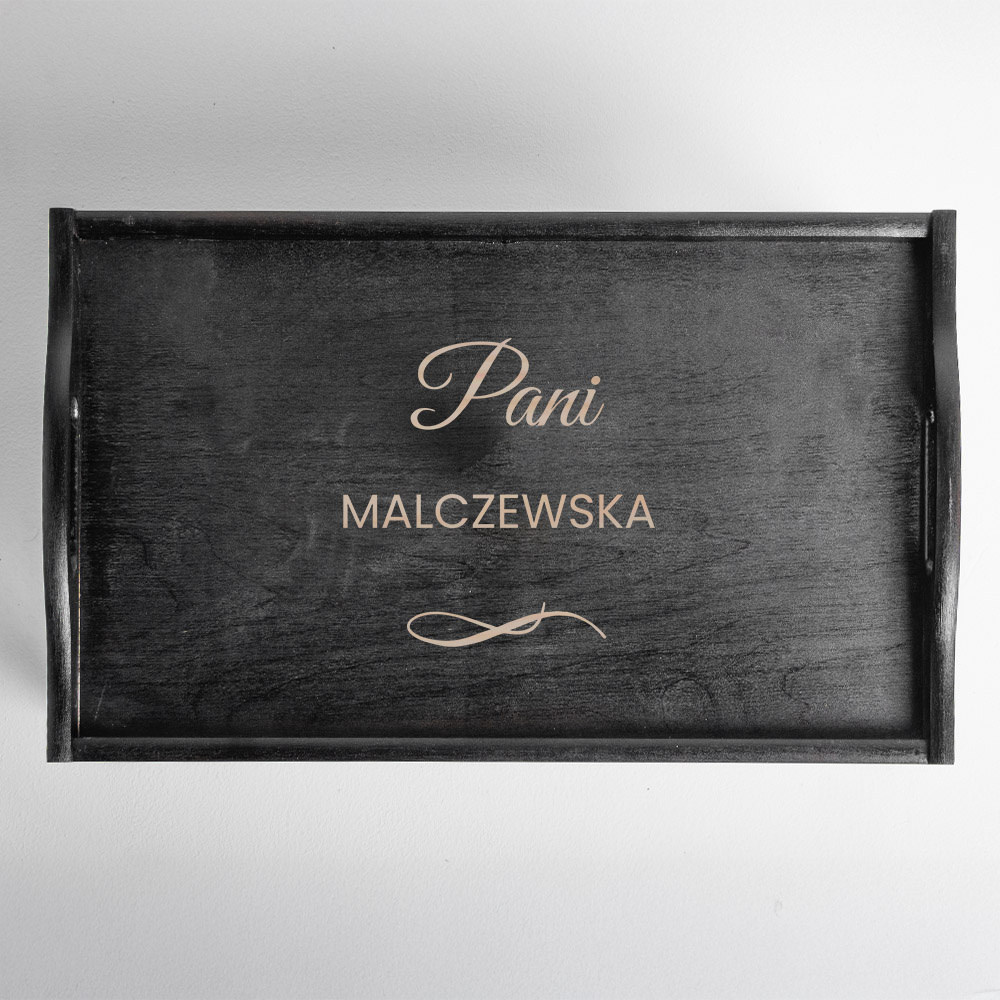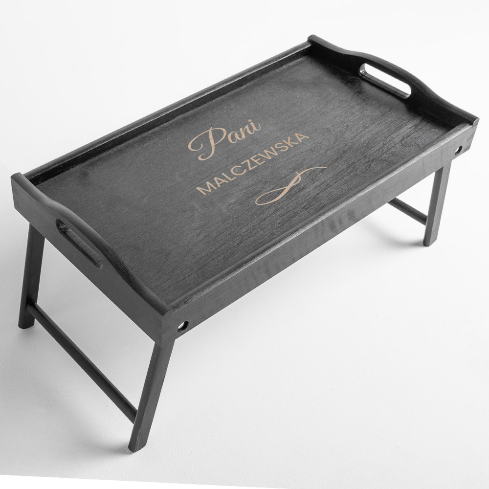 - Stolik śniadaniowy z grawerem „Pani Malczewska” to stylowy prezent z klasą – dla żony, mamy, teściowej, nauczycielki lub przyjaciółki. Praktyczny i pełen uroku.