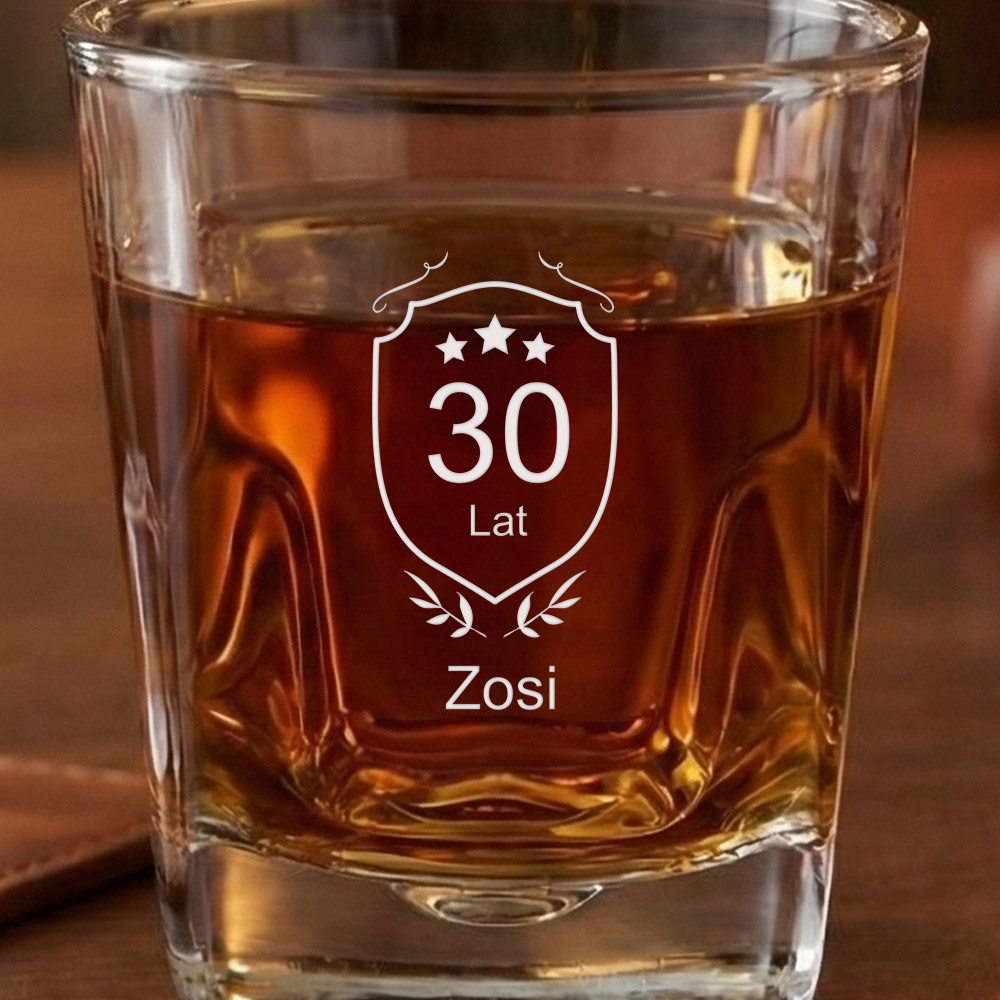 Wykonana z grubego, przejrzystego szkła, idealnie podkreśla kolor trunku i zapewnia komfort użytkowania. Grawerowana dedykacja nawiązuje do jubileuszu, czyniąc szklankę idealnym wyborem dla mężczyzny, który wkracza w „trzydziestkę” i chce celebrować ten moment w stylowy sposób.