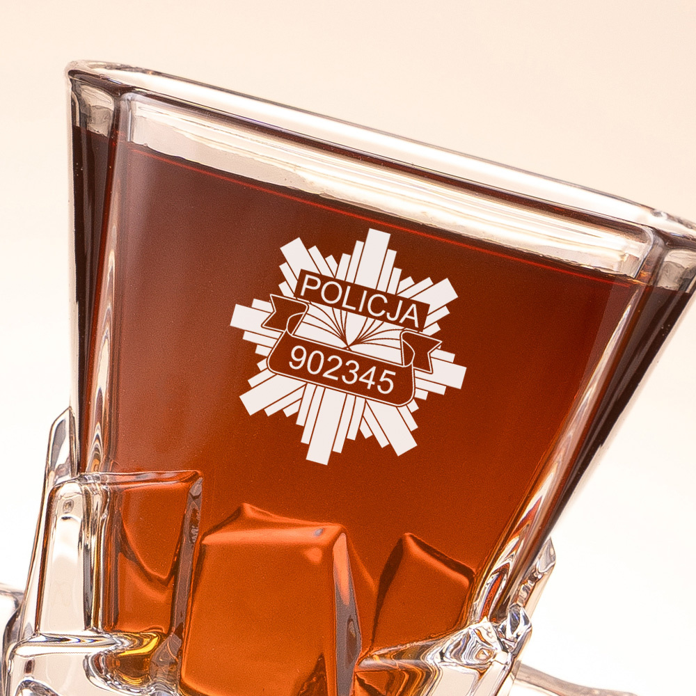 - Elegancka Szklanka Lodowa z grawerem odznaki policyjnej i numeru służbowego to wyjątkowy prezent dla policjanta – na urodziny, awans, przejście na emeryturę lub jako wyraz uznania.