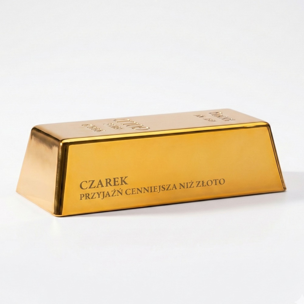 - Stylowa sztabka złota z grawerem imienia i tekstem „Przyjaźń cenniejsza niż złoto” to wyjątkowy prezent dla bliskiej osoby. Elegancka, praktyczna i pełna symboliki – idealna do domu, biura i jako upominek od serca.