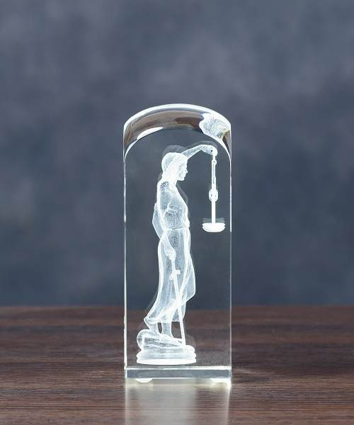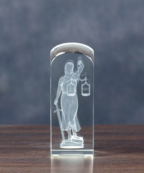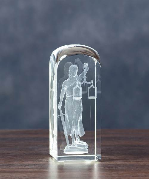 - Trójwymiarowa postać Temidy wygrawerowana w szklanej statuetce. Może być opatrzona dedykacją zgodnie z Twoim życzeniem. Kryształ pakowany w eleganckie etui.