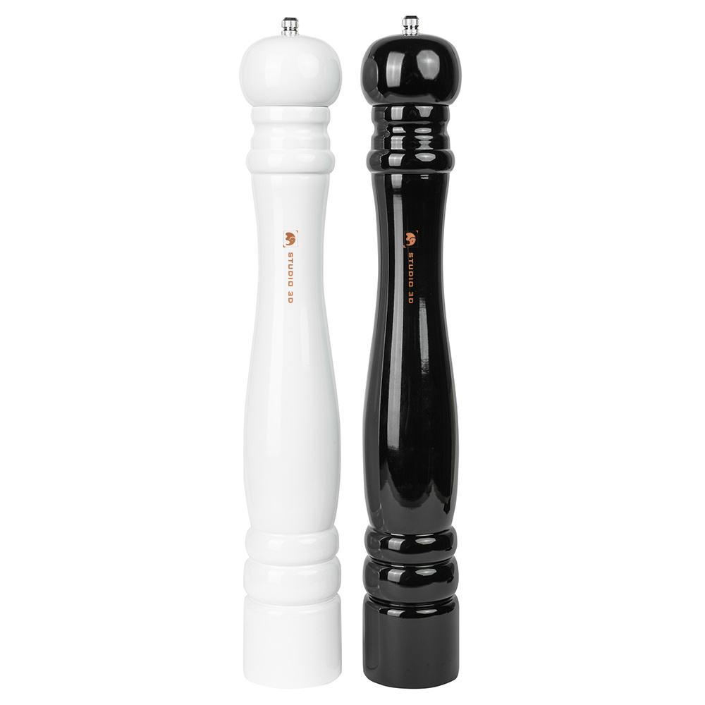 - Wyjątkowy zestaw 2 dużych młynków do soli i pieprzu, w kolorach białym i czarnym, wykonanych z drewna kauczukowego. Dodaj firmowe logo, tworząc stylowy upominek dla partnerów biznesowych lub pracowników.