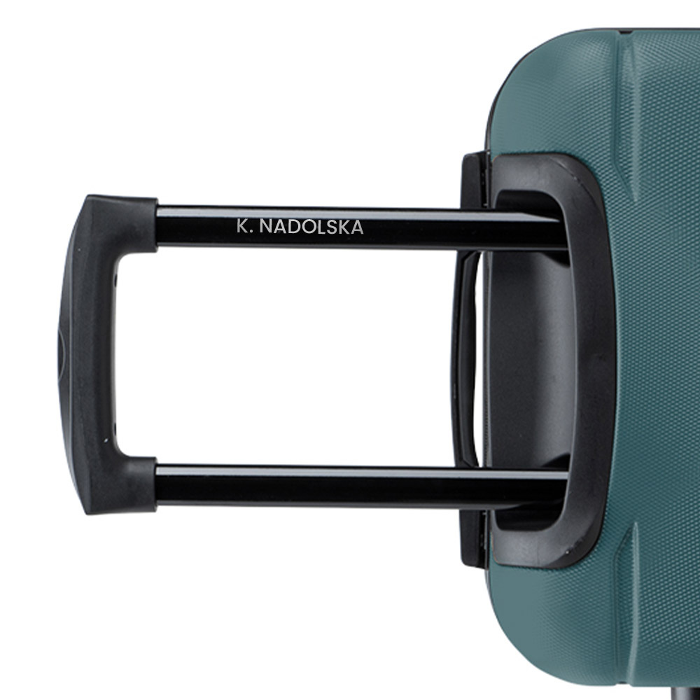 Walizka mała, zielona, Puccini Alicante z możliwością zabrania do samolotu. Na rączce personalizowany grawer, co z łatwością pozwoli odróżnić twoją walizkę od innej tego samego typu.