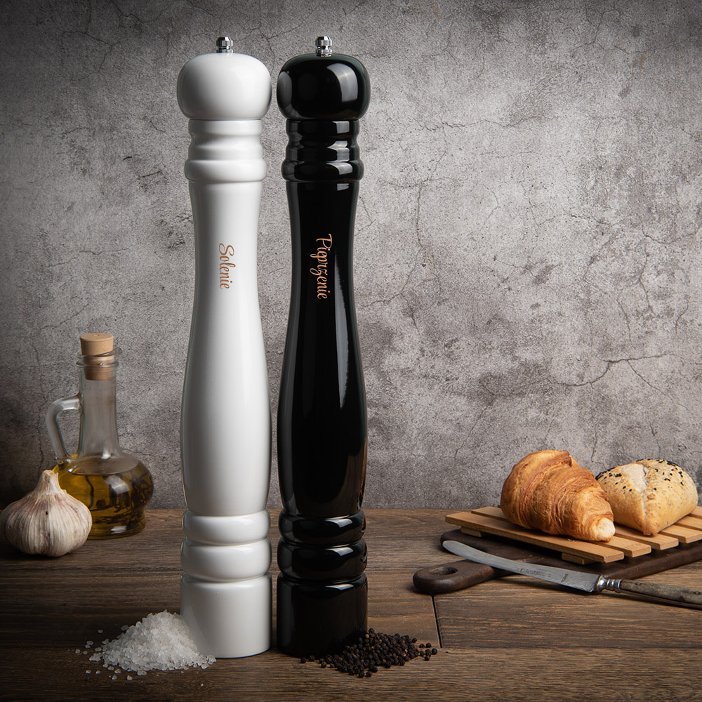 - w zestawie 2 elementy: biały młynek do soli i czarny młynek do pieprzu