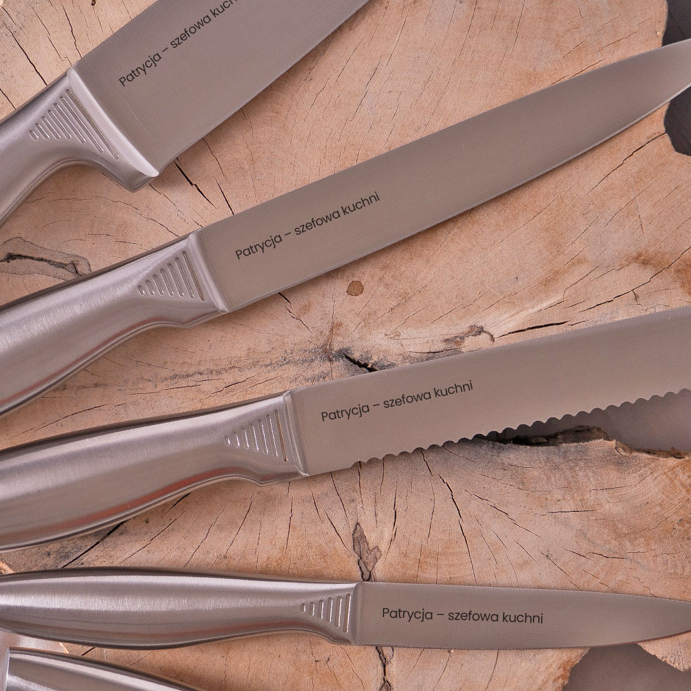 Jeśli znasz kobietę, która w kuchni czuje się jak ryba w wodzie, ten zestaw noży na prezent z pewnością ją ucieszy. To upominek z charakterem – z grawerem „Imię – szefowa kuchni”, który nie pozostawia wątpliwości, kto tu rządzi!