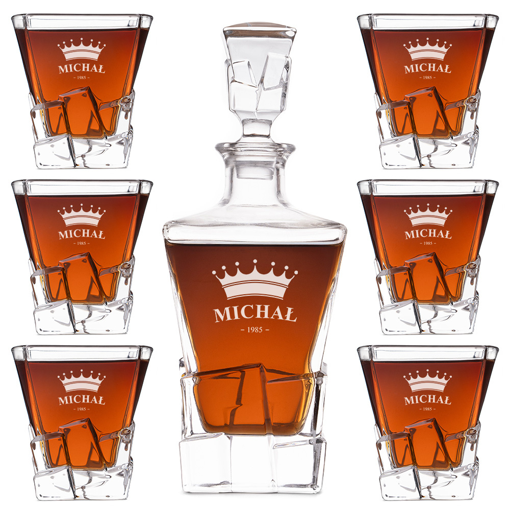 • Elegancki zestaw Premium do whisky z grawerem korony, imienia i rocznika to wyjątkowy prezent na urodziny – praktyczny, personalizowany i pełen królewskiego charakteru.