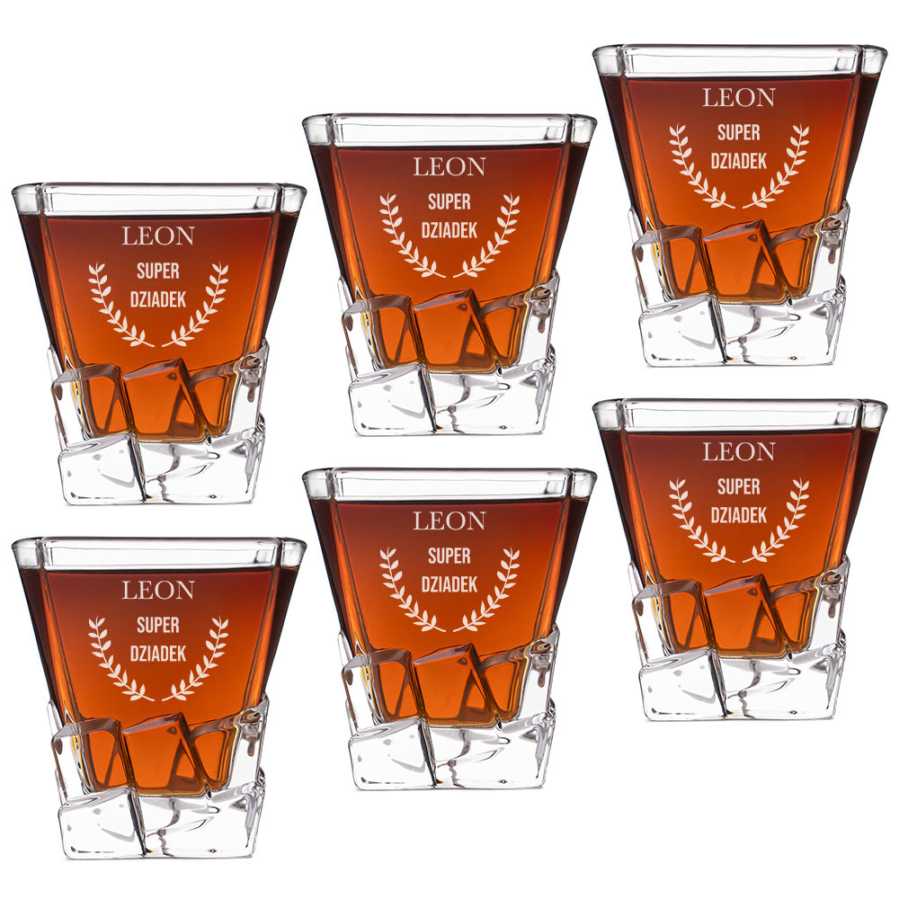 Ten zestaw 6 szklanek z grawerem „Super Dziadek” + imię to prezent, który łączy ciepło rodzinnych uczuć z praktycznym zastosowaniem. Szklanki mają masywną podstawę stylizowaną na kostki lodu, a ich wyjątkowy design podkreślony jest trwałym grawerem laserowym. Napis „Super Dziadek” z imieniem wywoła uśmiech i wzruszenie, szczególnie gdy zestaw wręczą wnuki.