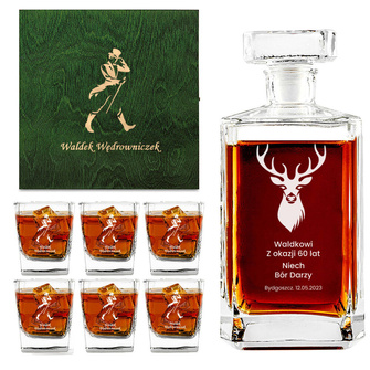Prezent dla myśliwego - Zestaw do whisky z personalizacją | Karafka + 6 szklanek