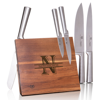 Komplet noży z blokiem magnetycznym DLA PARY - GRAWER MONOGRAMU I NAZWISKA
