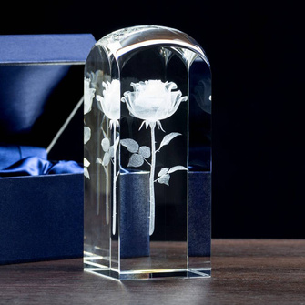 Róża 3D Wygrawerowana wewnątrz statuetki - PREZENT DLA NIEJ