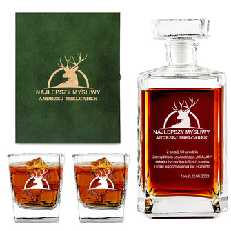 Zestaw do whisky z grawerem w drewnianej skrzynce - PREZENT DLA KONESERA WHISKY
