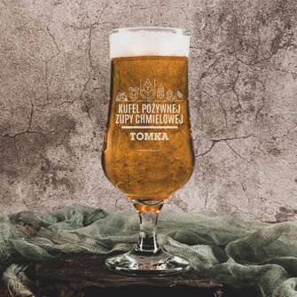 Szklany kufel do piwa z grawerem KUFEL POŻYWNEJ ZUPY CHMIELOWEJ + IMIĘ