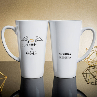 Kubek Latte duży z nadrukiem ANIOŁA NIE KOBIETA + IMIĘ i NAZWISKO
